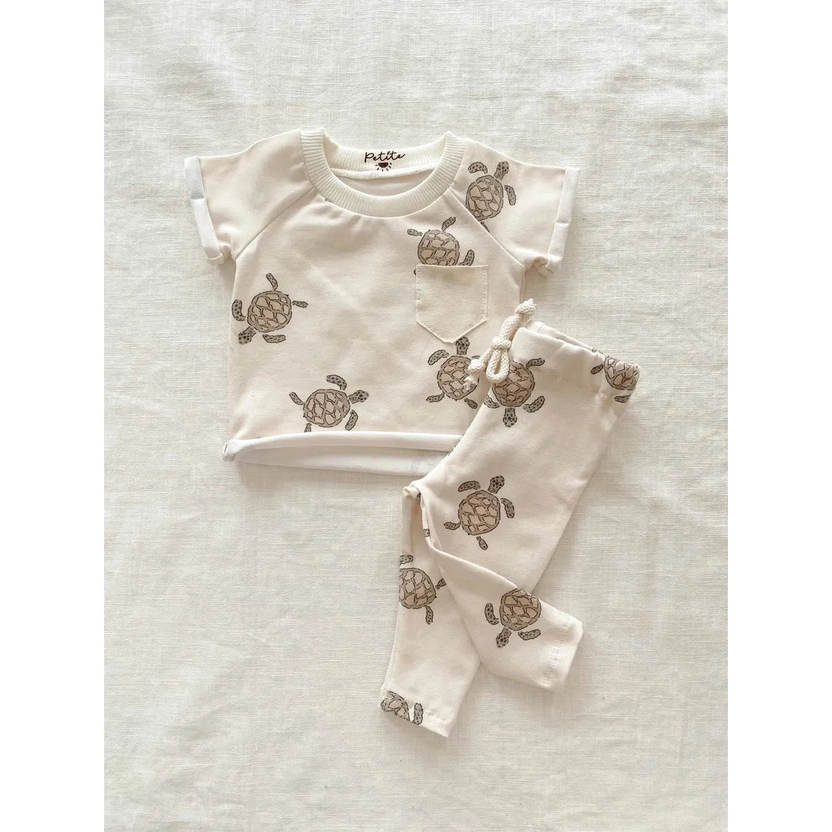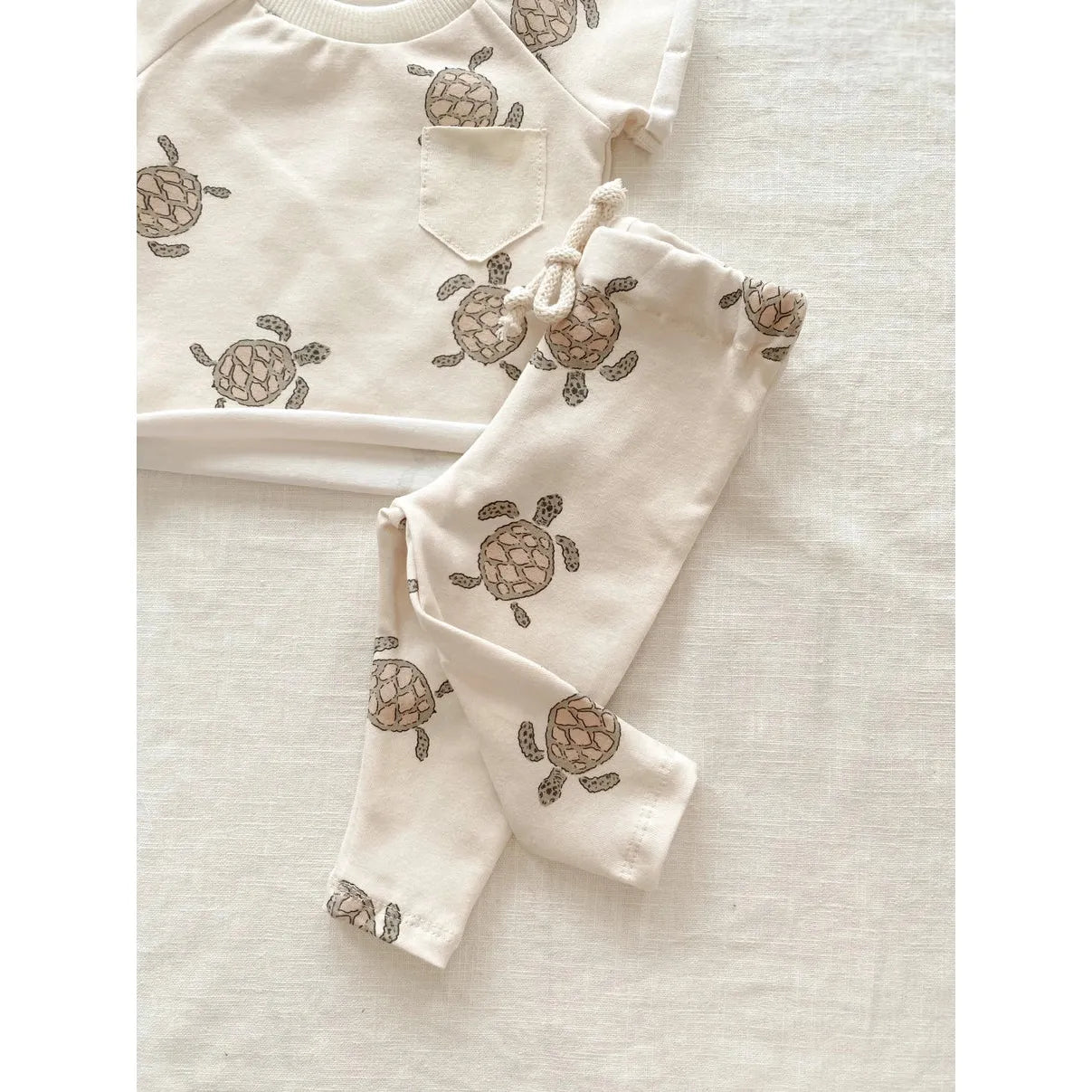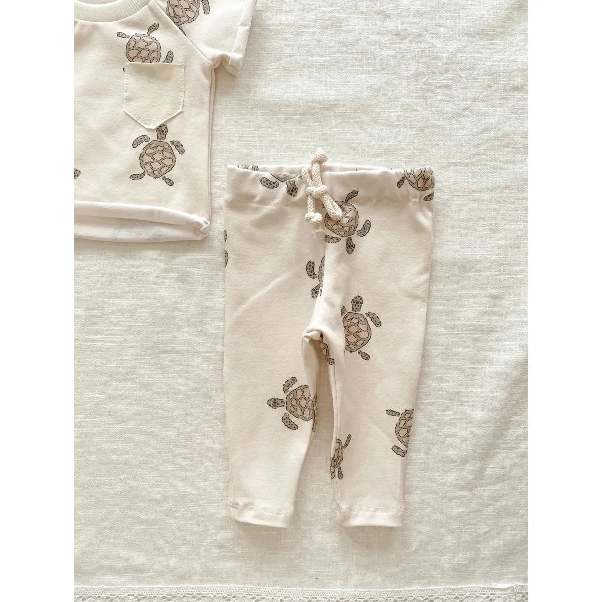 The cutest little legging in turtle print. Handmade from soft cotton jersey. Gender neutral print. Pair with our turtle t-shirt to complete the look.