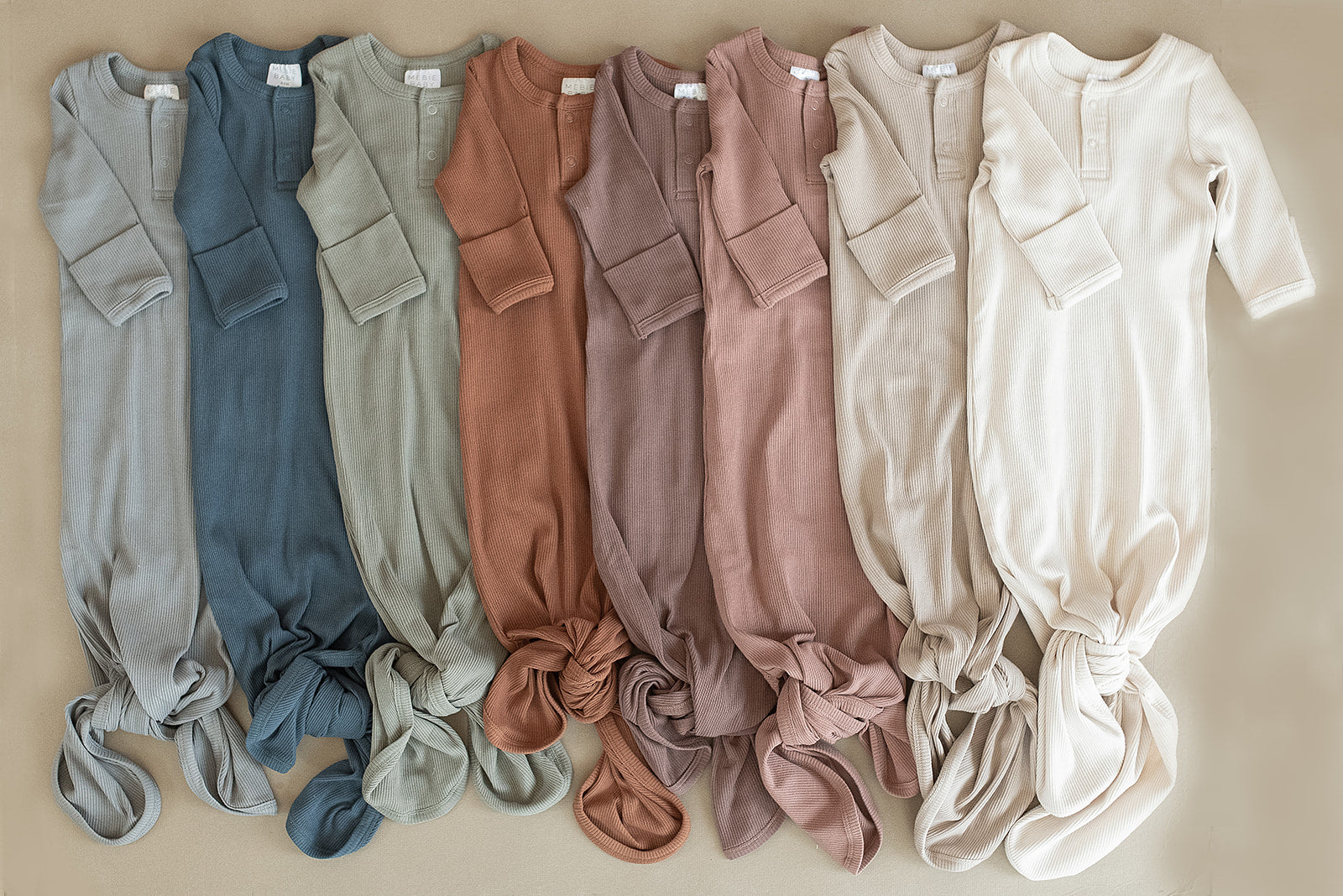 These gowns are size 0-3. They are made out of stunningly soft organic cotton to keep your little one comfortable. We have a variety of gender neutral designs and colors making them perfect for any baby. They have fold over hands and two snaps for easy on and off. We also have shoulder flaps to make it easily pull over your little ones head, we want to make dressing your baby as easy as possible. The bottom is easily tied and untied in a knot for no-fuss diaper changes which makes it a newborn baby essential!