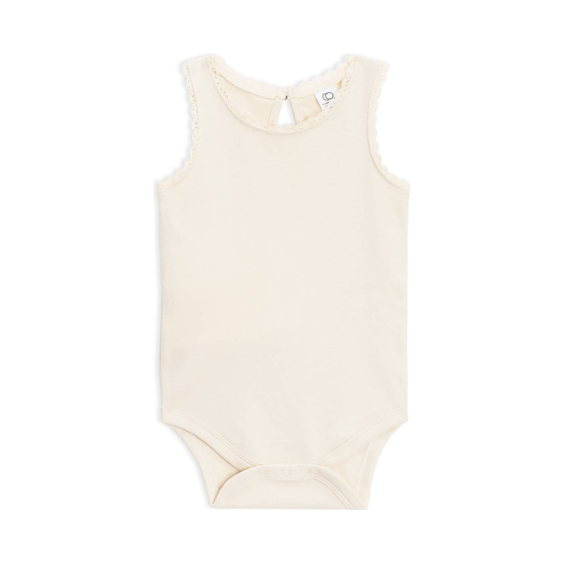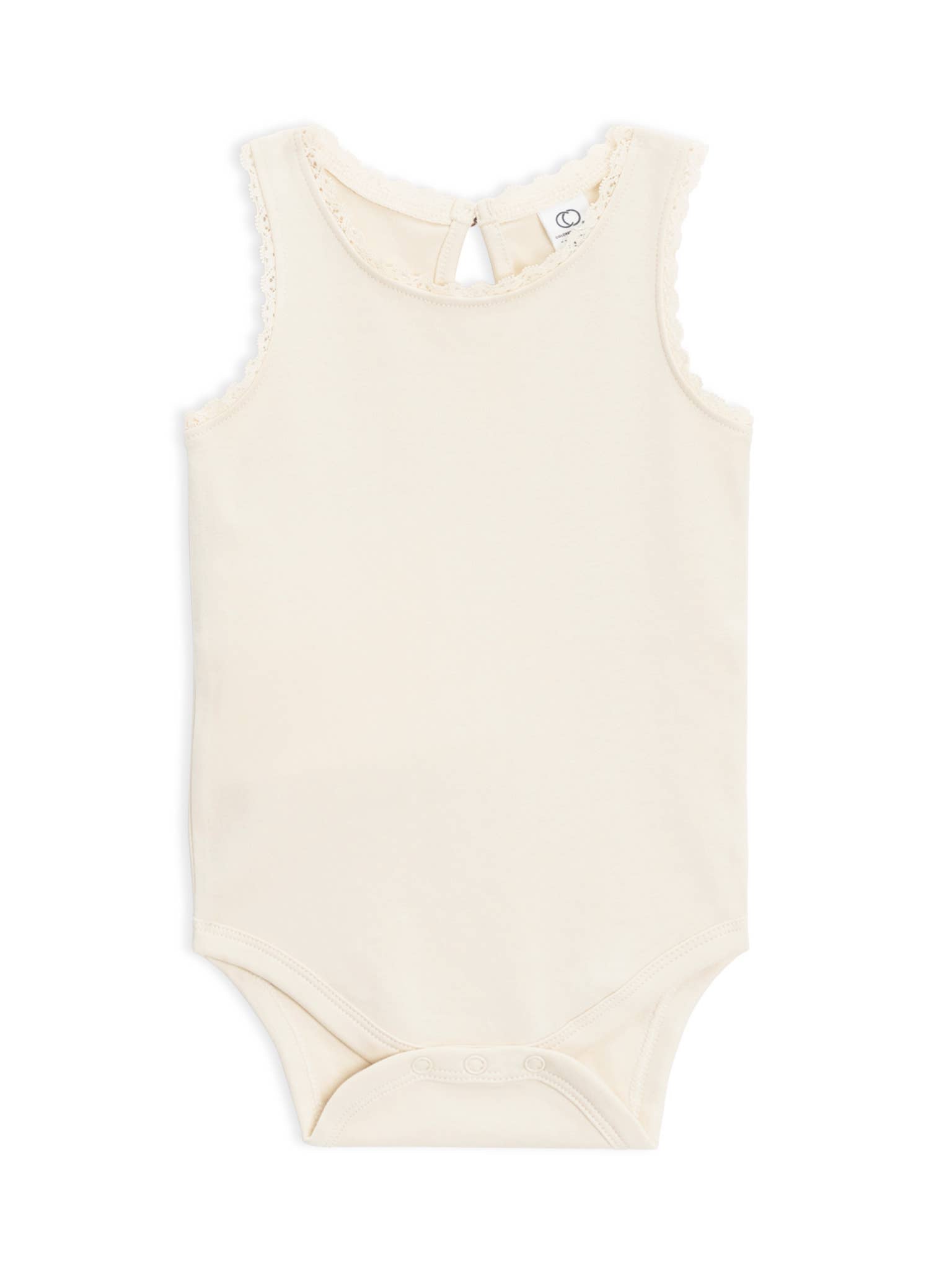 Our sweetest staple with a touch of lace. The Luna tank bodysuit will be a go-to base layer that lasts well beyond summer vacation. Just like all of our mama-favorite bodysuits, this new style is made with our softest organic cotton.
