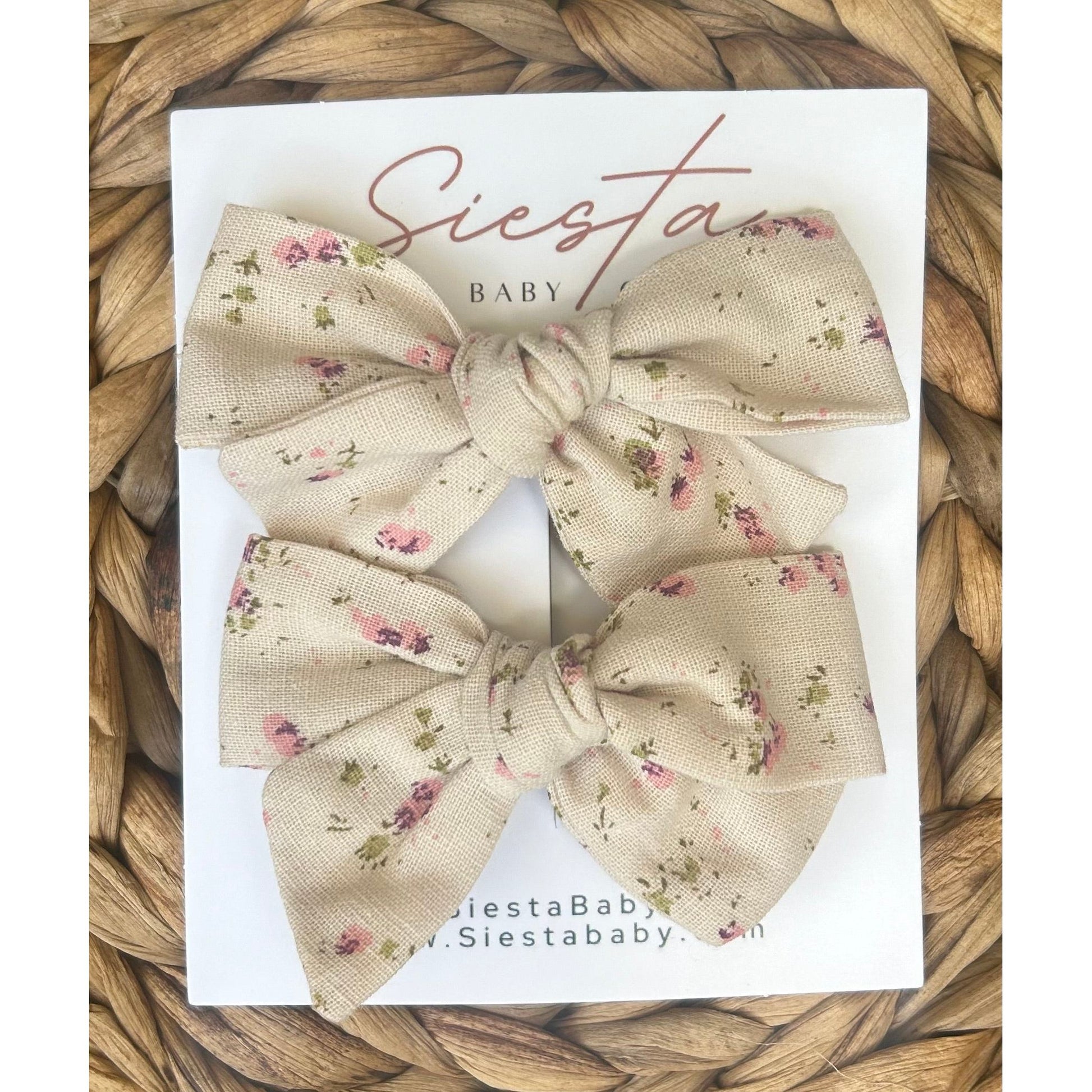 The sweetest little bows with alligator clips. Would look adorable as pigtails.