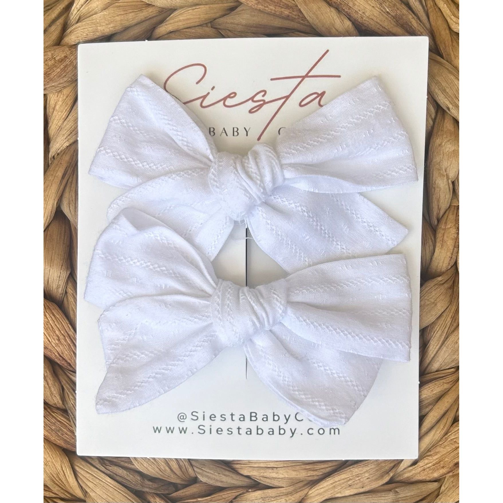The sweetest little bows with alligator clips. Would look adorable as pigtails.