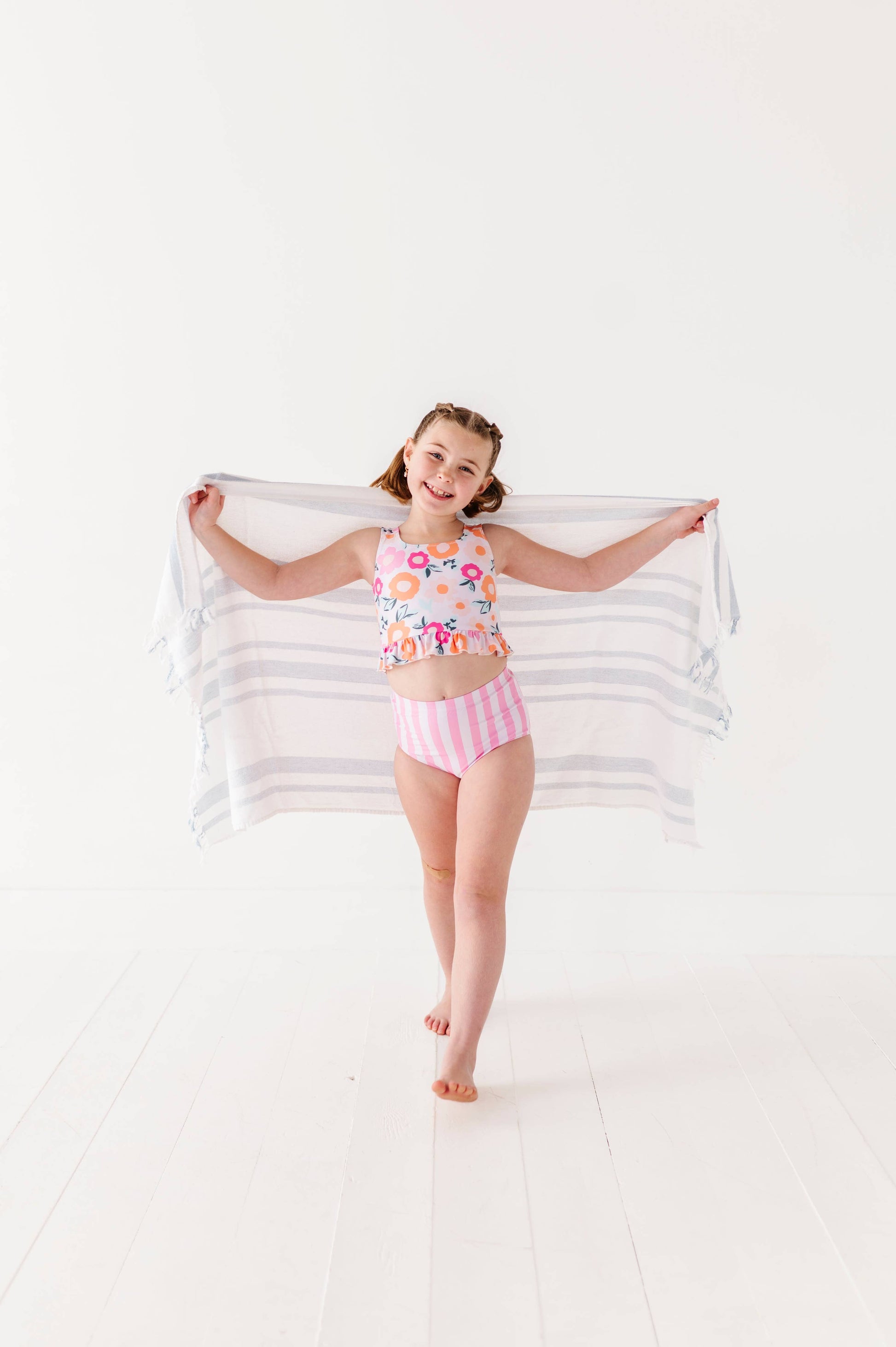 SIZING: This swim set runs true to size and we recommend ordering any 2-piece swim based off of your child’s WAIST size and one-piece swim based off of your child’s pant LENGTH size.